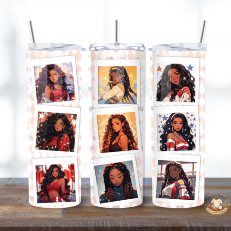Chaque tumbler est réalisé à partir d’un modèle visuel sélectionné dans la boutique, avec la possibilité d’y ajouter un prénom (ou un mot court).